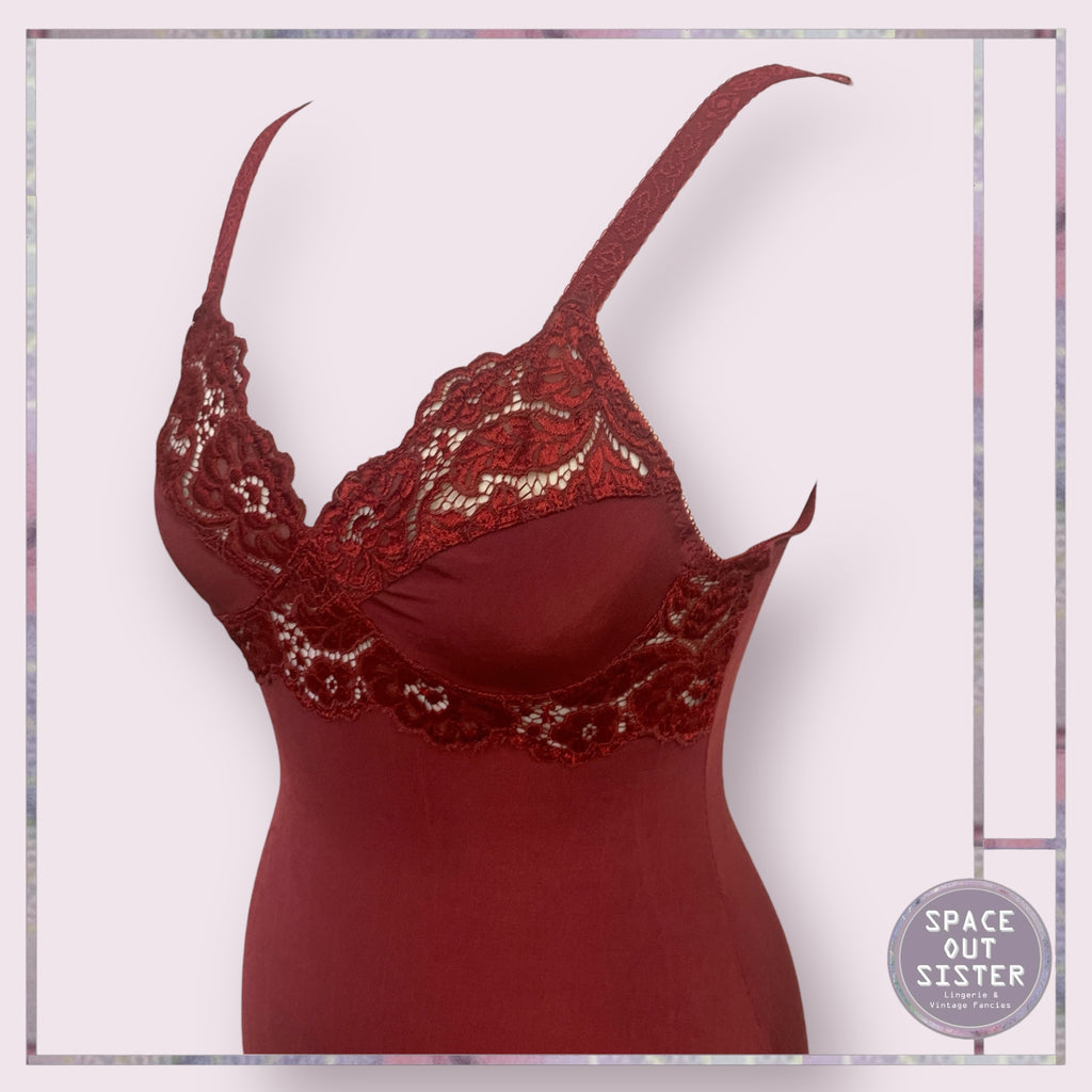 Discover the timeless elegance of our Vintage Sadina Nightdress. Made with stretch fabric in a rich burgundy hue, this nightdress exudes both comfort and sophistication. Perfect for a cozy night in or a special occasion, it's sure to become a staple in your wardrobe.
