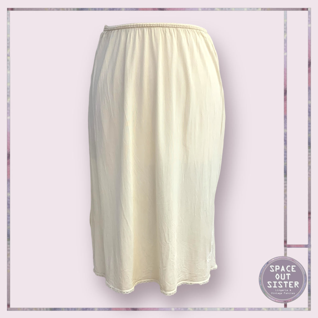 Expertly crafted, this Vintage Butterscotch Half Slip exudes elegance with a delicate floral lace detail. Its butterscotch hue adds a touch of sophistication, making it a must-have for any lingerie collection. Slip into luxury with this gorgeous half slip.
