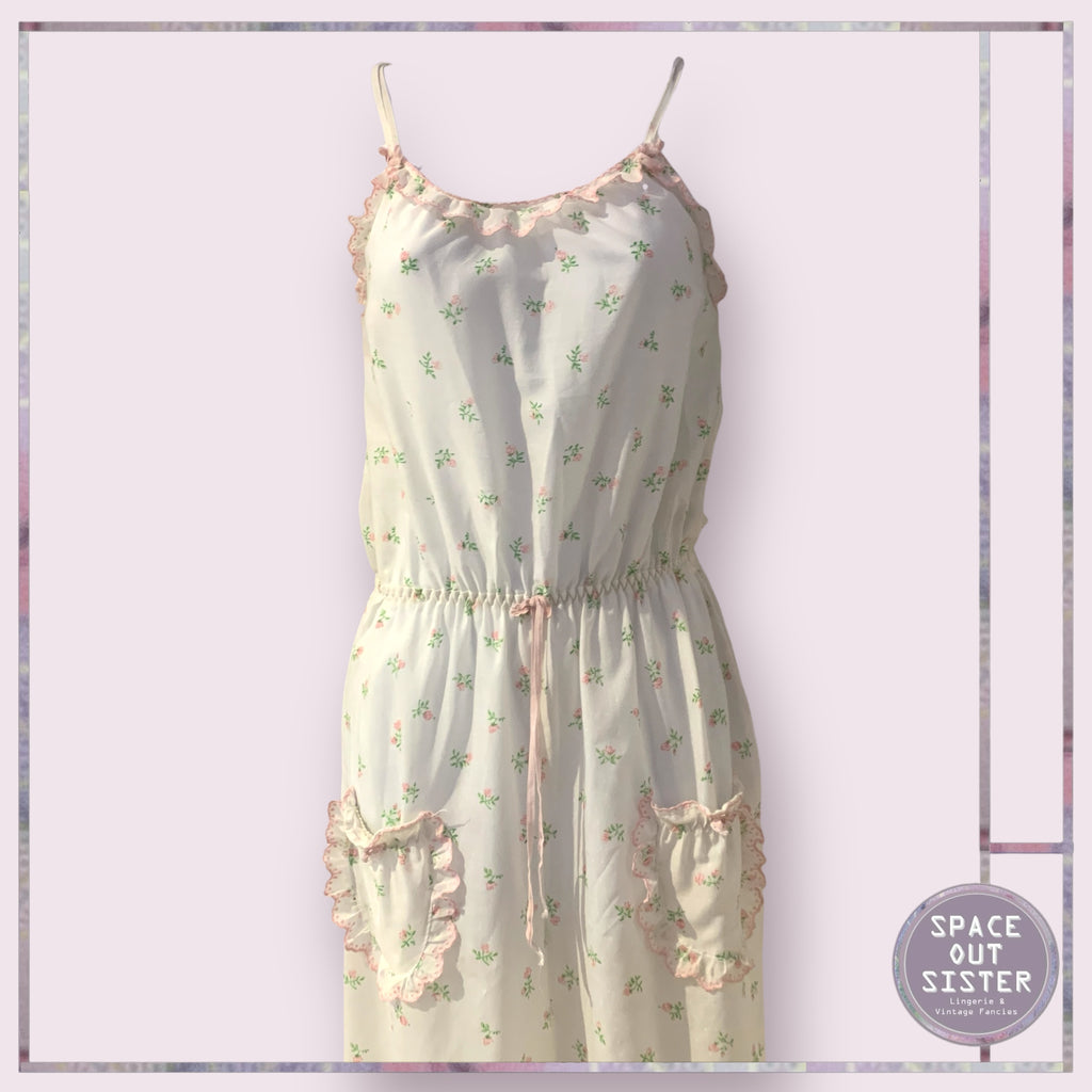 Step into the world of whimsy with our Vintage Floral Jumpsuit! This rare ivory beauty, adorned with delicate rose patterns, is like wearing a garden party (without the bees!). With ruffled pockets for secret snack stashes and tie straps that say, “I’m here for fun,” it’s perfect for lounging in style!