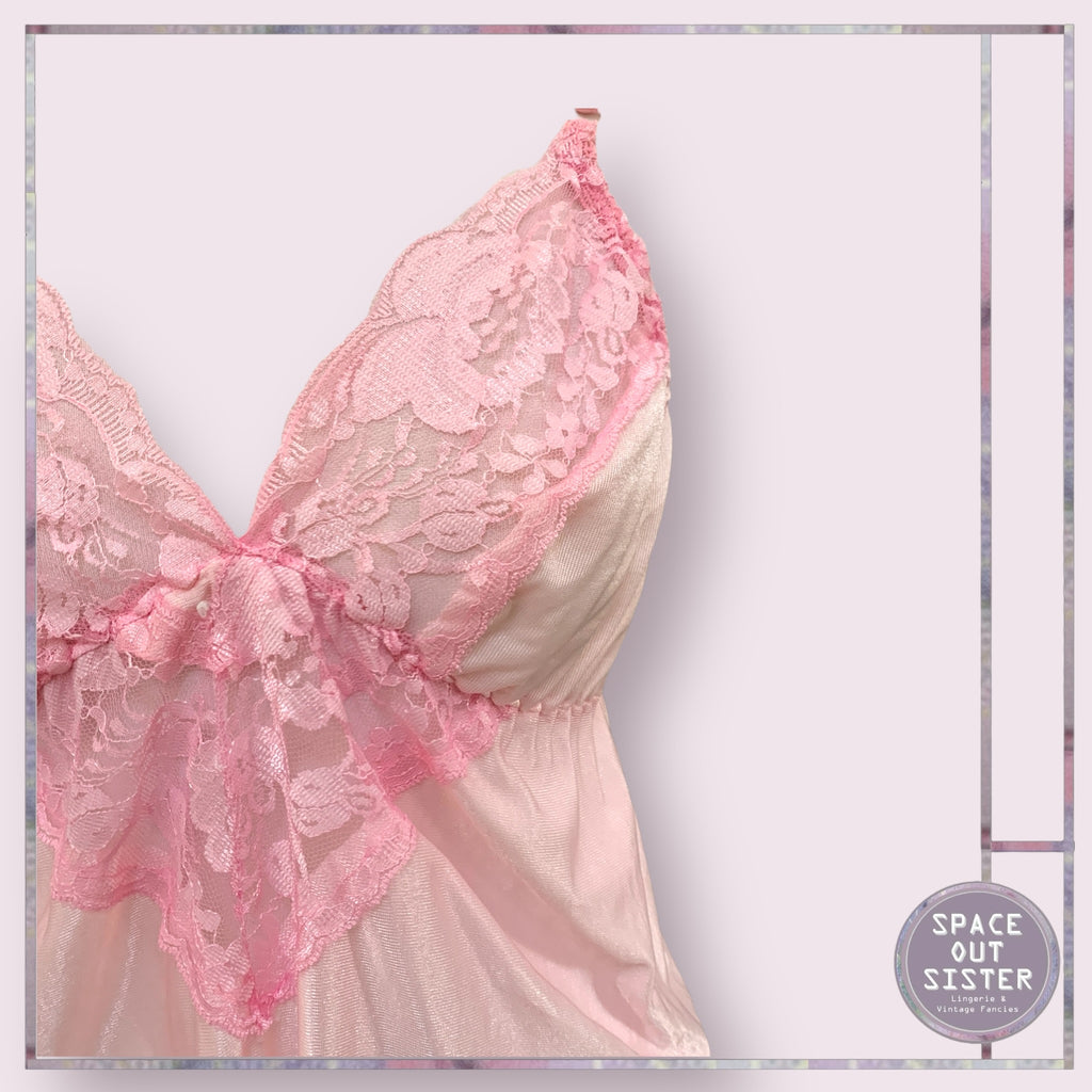 Indulge in the ethereal charm of our Vintage Marshmallow Nightdress, a delicate confection in candy floss pink. This enchanting attire, with its gracefully defined & elasticated bust area, caresses the silhouette and falls softly to the knees, evoking the nostalgic elegance of bygone eras, perfect for serene nights of luxury and reverie.